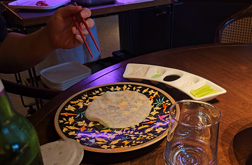 어쨋든 베이징덕이 나오면 같이 주는 말랑말랑한 또띠아 같은 걸로 쌈싸먹듯이 먹으면 된다.