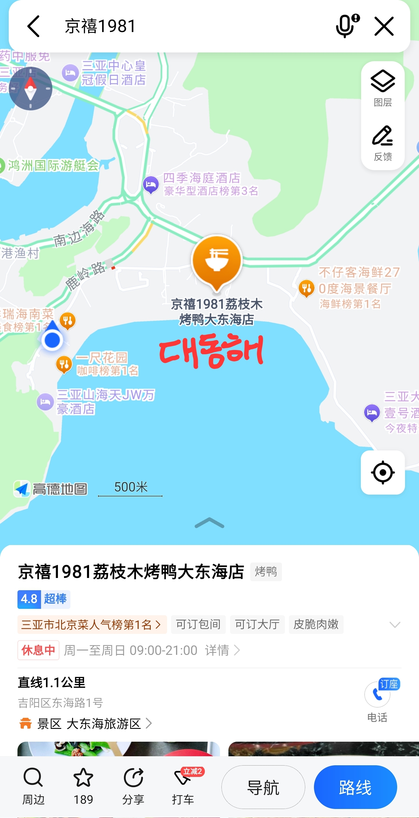 하이난 싼야 대동해 근처에서 맛집 찾으신다면 북경오리는 어떠신가요?