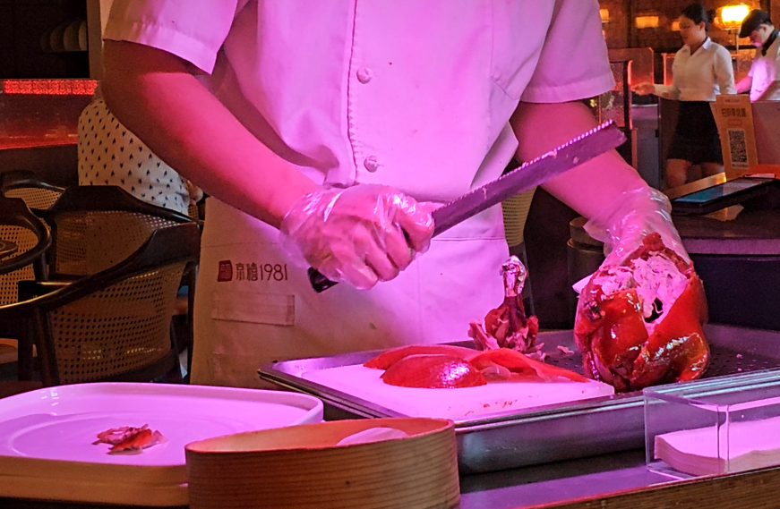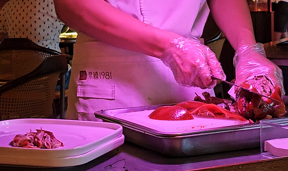 잠시 후 베이징덕을 테이블 바로 옆에서 통째로 한마리를 즉석 해체해주신다.