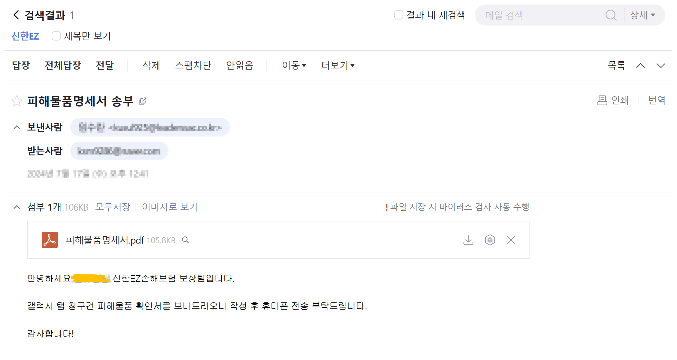 ✔ 보험 청구서: 메일로 받아서 사고 내용이랑