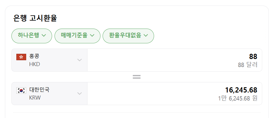 왕복 88홍콩달러로